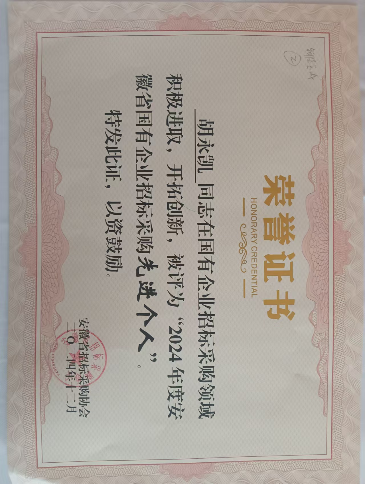 公司榮獲安徽省招標(biāo)采購協(xié)會(huì)表彰