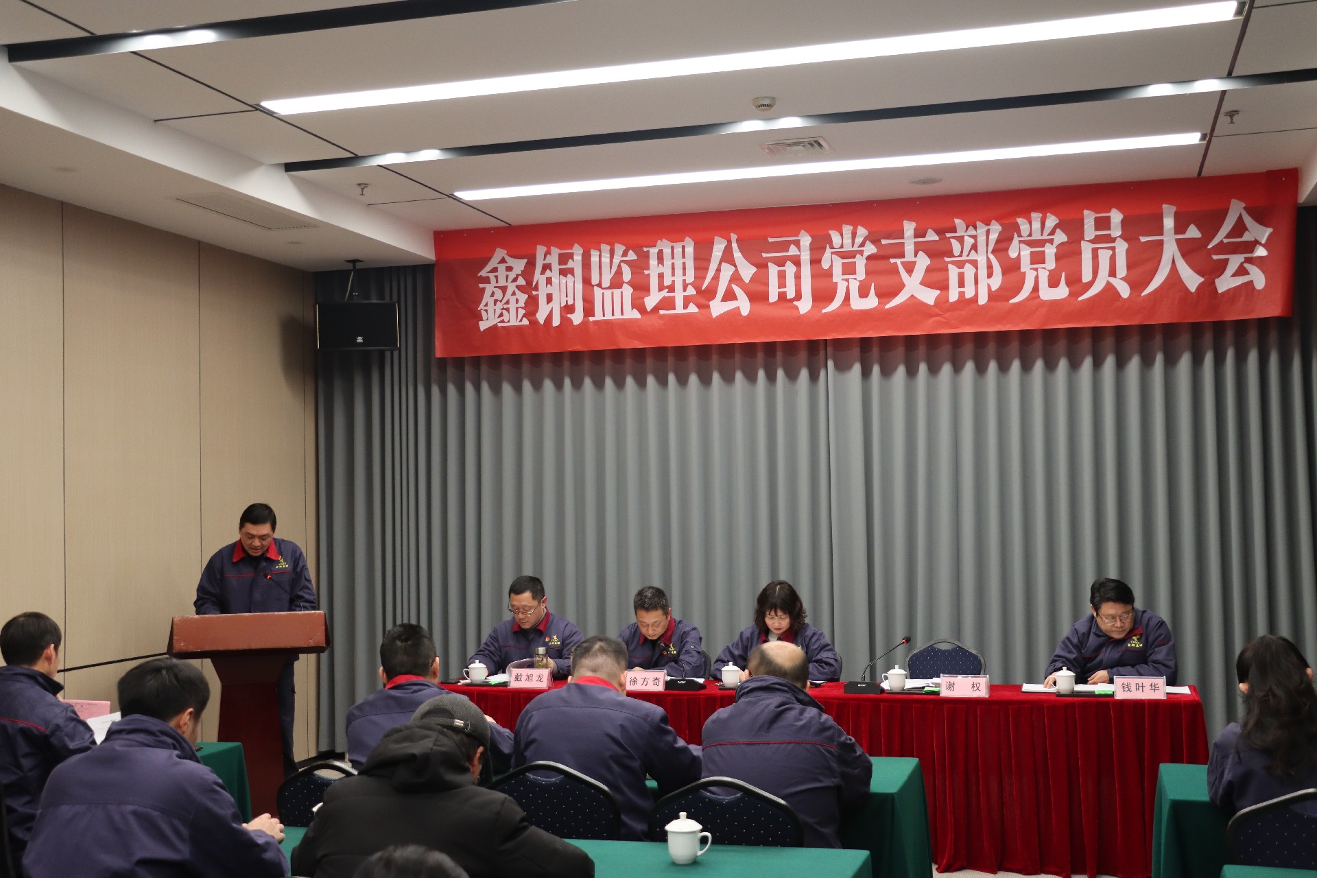 130日,中共鑫銅監(jiān)理公司(鑫銅造價公司)黨支部換屆選舉黨員大會在五松山賓館三樓B會議室召開,會議由公司黨支部書記、經(jīng)理謝權(quán)同志主持。