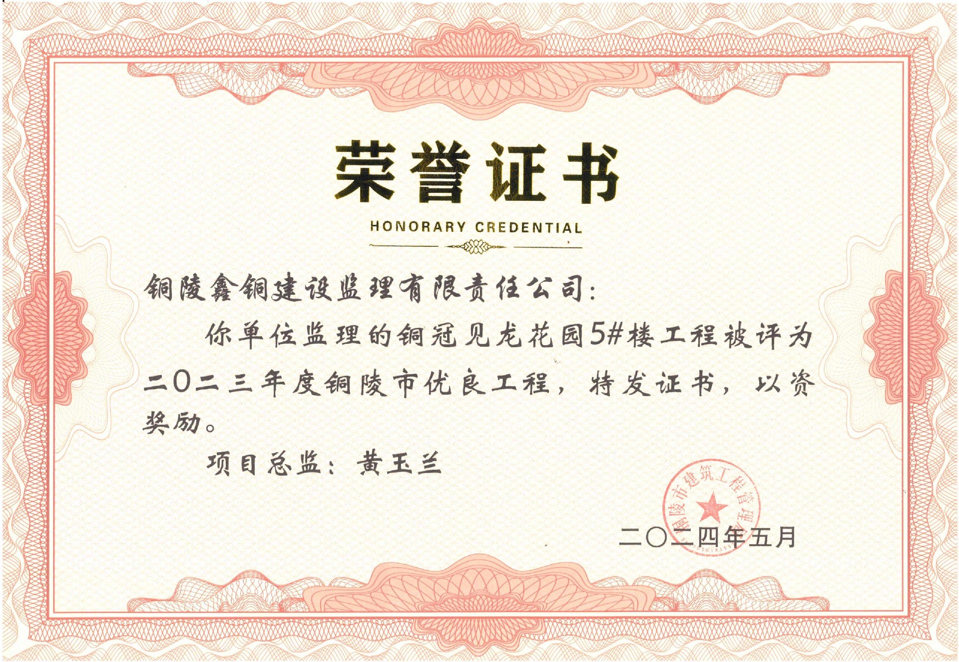 公司多個監(jiān)理項目被評為銅陵市優(yōu)良工程
